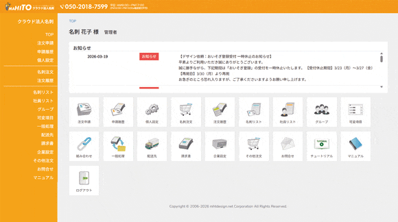 過去の名刺の注文履歴を確認できます。