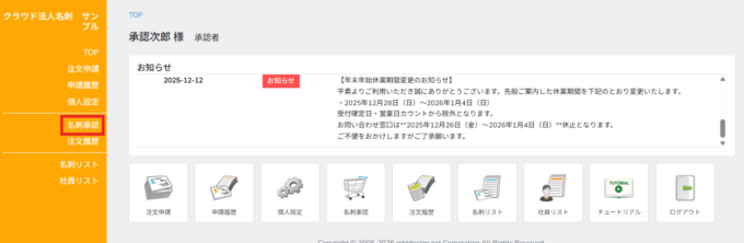 • 多重承認設定をした子グループの承認者は承認のみとなり、注文はできません。